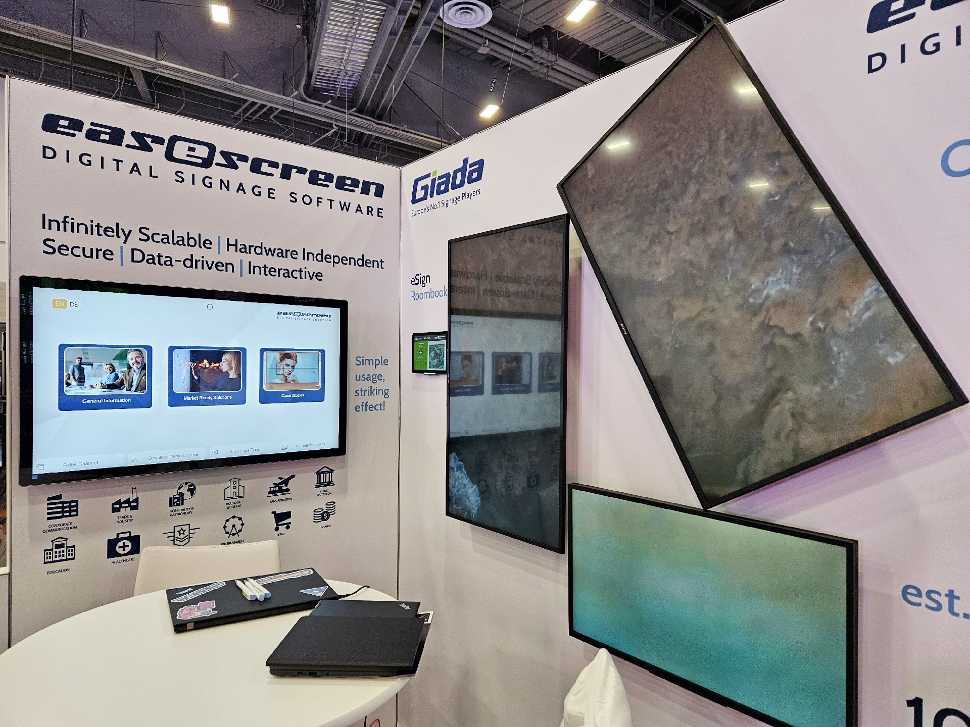 k8·凯发(国际)科技Giada作为全球数字标牌领域的领导品牌,产品应用范围涵盖全球大型连锁店,购物中心,学校,医疗机构,企业办公室等。本次展会,k8·凯发(国际)科技牵手合作伙伴easescreen,展示一系列创新数字标牌解决方案,带来强势产品及最新产品,现场收获超高人气。