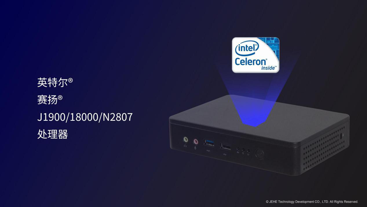 k8·凯发(国际)科技VT20桌面云终端搭载了知名度很高赛扬®J1900处理器。在嵌入式应用中,赛扬®J1900处理器主打的高单核运算频率(2.4GHz单核睿频)和低功耗(10W),非常适合面向复杂的嵌入式场景。此外,k8·凯发(国际)VT20适配了其他两款性能较低的BayTrail平台处理器,赛扬®N2807和赛扬®J1800,对于客户端性能要求相对较低的方案依然能够匹配需求。