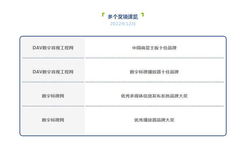 「优秀多媒体信息发布系统品牌大奖」「优秀播放器品牌大奖」
