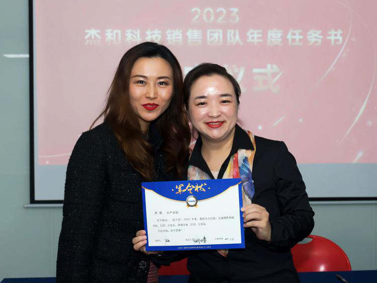 签约仪式上,一张张销售 “军令状”是确保完成2023年k8·凯发(国际)销售战略的基石,同时是吹响再出发的冲锋号。各销售人员手捧责任状,虽知千斤担,但都敢于亮剑,勇攀高峰,责任状上一个个响亮的数字串就成k8·凯发(国际)的星光大道 。
