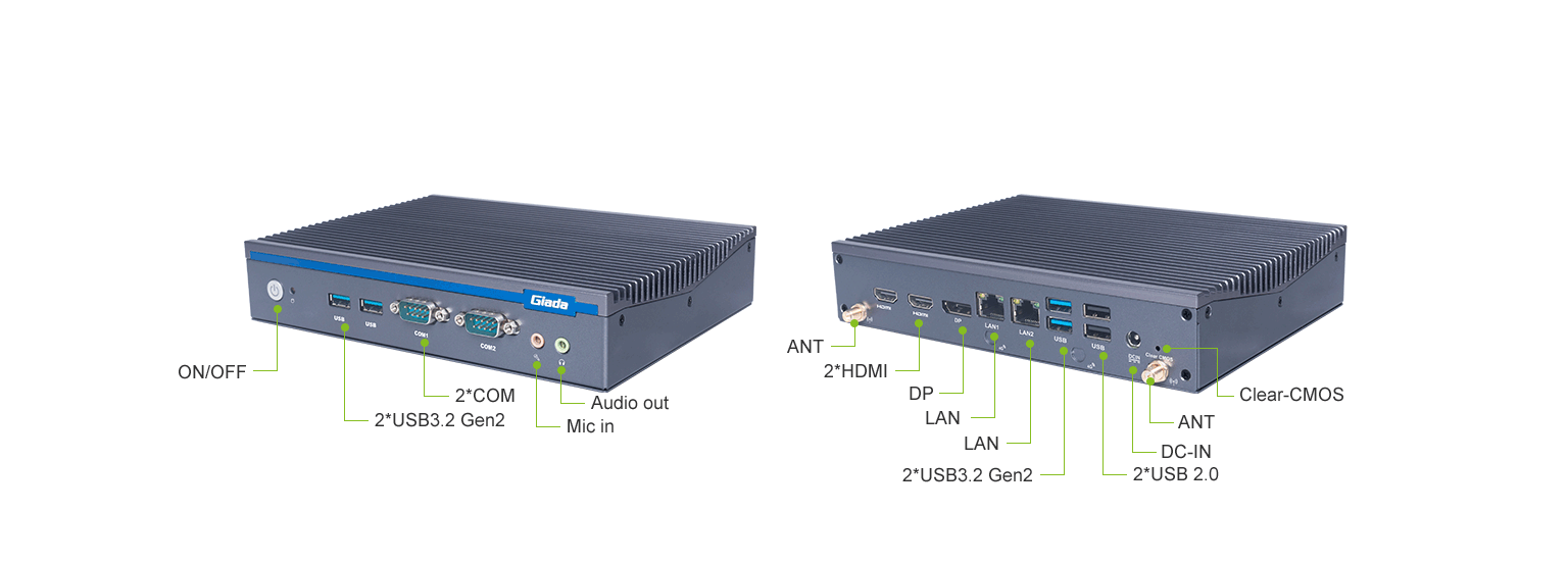 k8·凯发(国际)科技AE613支持Windows 11 (64bit) /Linux Ubuntu (64bit)系统,双千兆自适应RJ45网口,4 x USB3.1 (10 Gbps),2 x USB2.0,1 x RS232,,1 x RS232/422/485,1 x MIC-IN,1 x AUDIO-OUT,丰富的I/O功能接口,实现更多功能扩展。